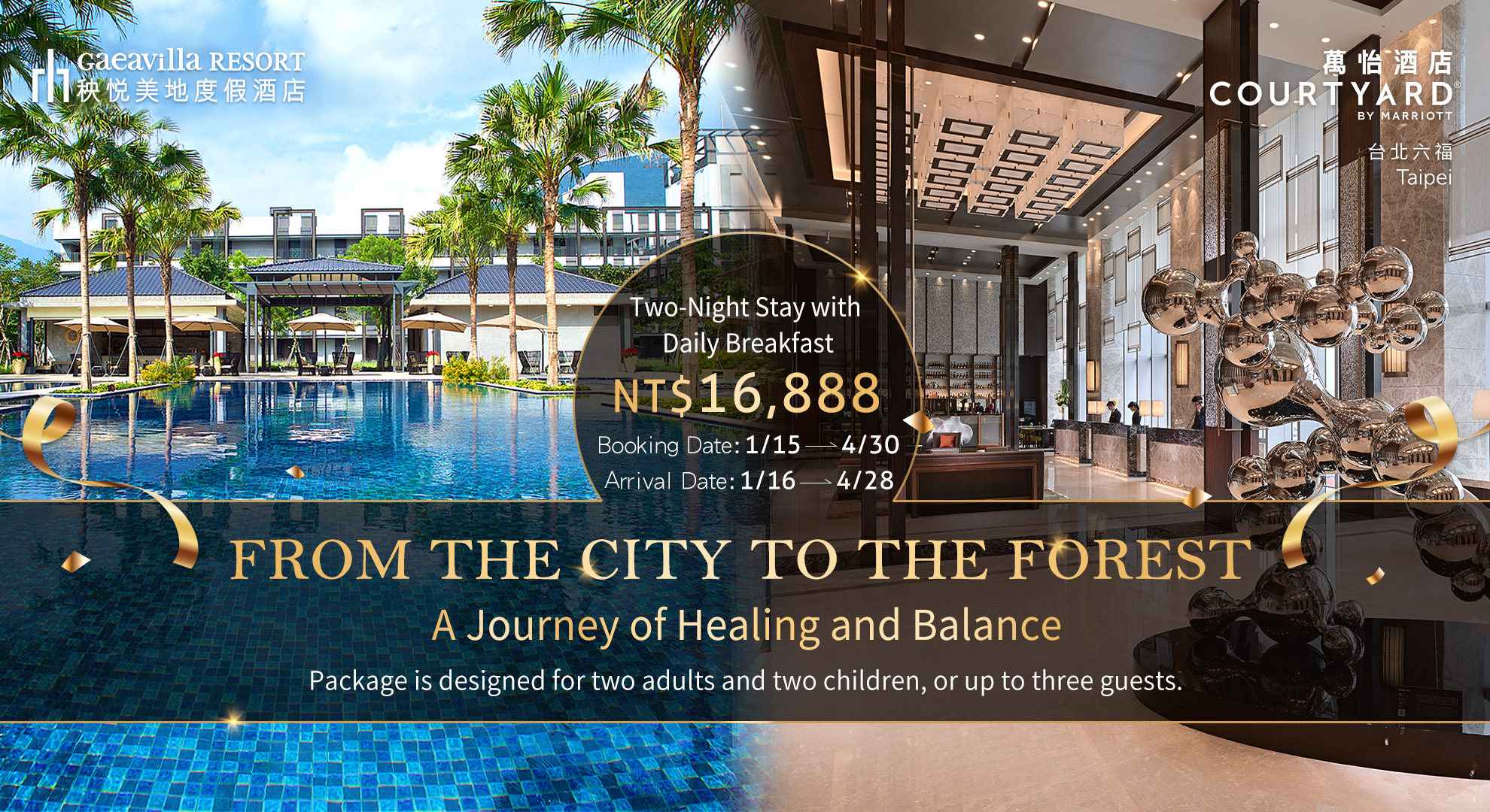 入住期間:自115年1月16日至115年4月28日止 春遊好時機,台北六福萬怡酒店及花蓮秧悦美地度假酒店攜手推出「怡悦療癒雙城」三天兩夜住房專案,即日起至4月28日超值優惠,平日入住台北六福萬怡豪華客房一晚,或是花蓮秧悦美地迷迭香尊貴客房客房一晚,入住當日即贈送另一家飯店雙人平日住宿券,並享翌日自助式早餐,可以分時、分地、自由安排旅遊行程,不需連住任選暢遊,全方位享受從城市到山林的療癒旅程,台北、花蓮雙城的國際五星級酒店,提供出遊度假、商務差旅、追星演唱會的多元選擇。