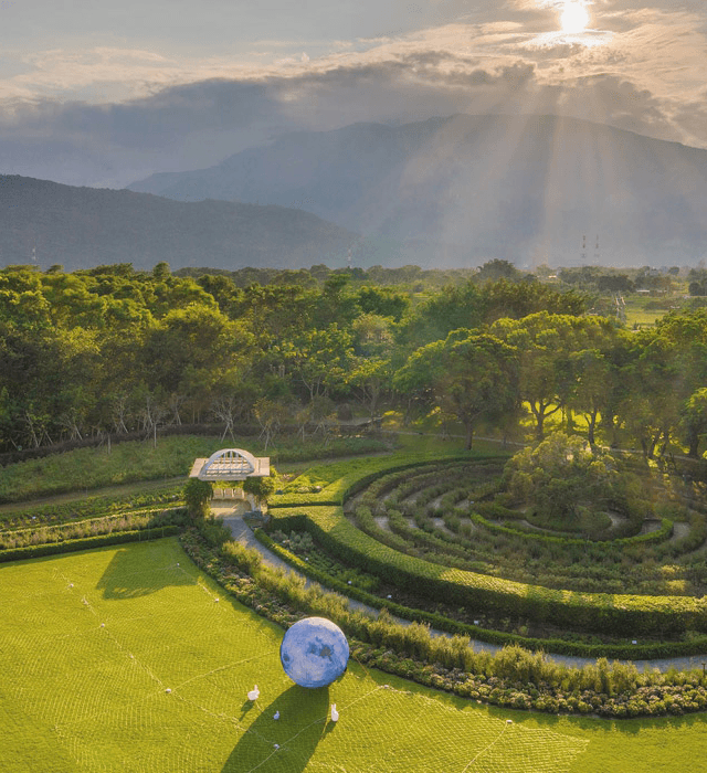 坐落於中央山脈山腳下的有機村落中,隨風起舞的香草芬芳,悄然無息地漫佈兩萬坪的無毒土地,遇見一片純淨的自然生態,生生不息的喜悅穿透了一幢幢綠建築,高度私密的空間讓身心於山海天地間得以歇息、悠然自在放逐自我,深沉融入與萬物對話,沉醉於內心的寧靜平和。